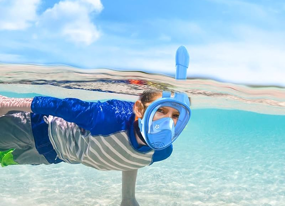 The Zipoute Snorkel Full Face Mask is a standout choice for young adventurers, offering a 180° panoramic view that enhances underwater exploration. Its wide, distortion-free lens ensures kids can see marine life clearly without dizziness or discomfort. The full-face design allows natural breathing through both nose and mouth, making it ideal for beginners.