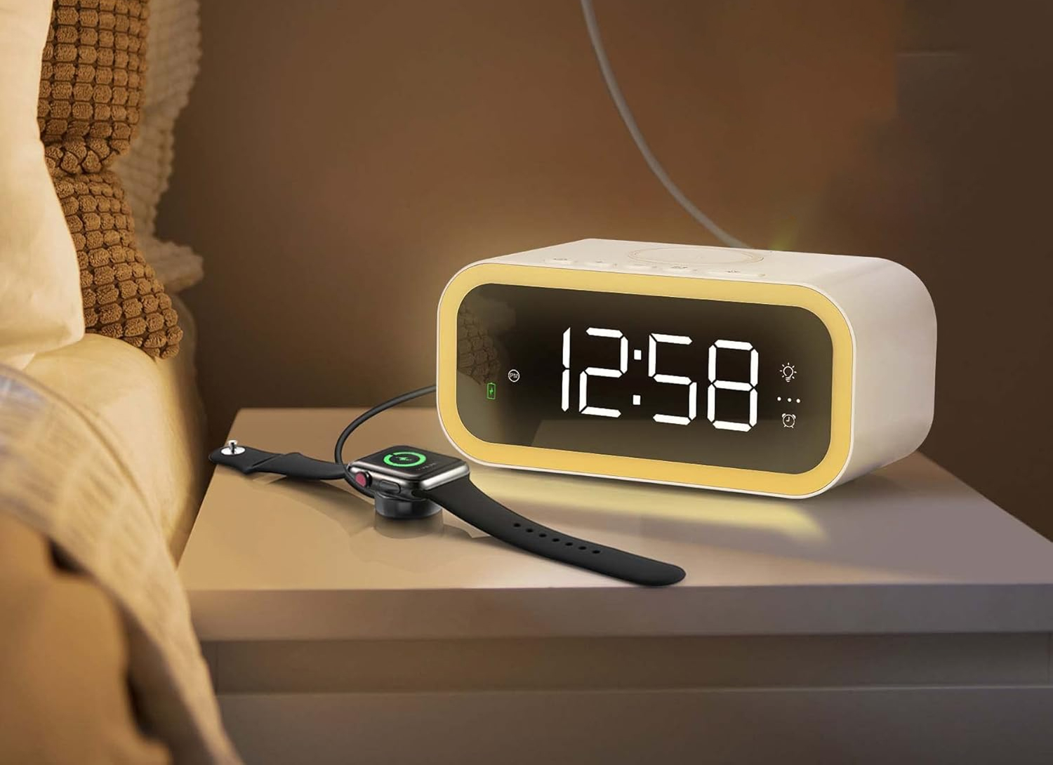 This clock isn’t just about timekeeping—it’s a versatile hub for your nighttime routine. The adjustable night light offers warm yellow or white light options, creating a cozy ambiance. Its broad compatibility with Samsung, Apple, and other Qi-enabled devices makes it a universal charging solution. ⚡